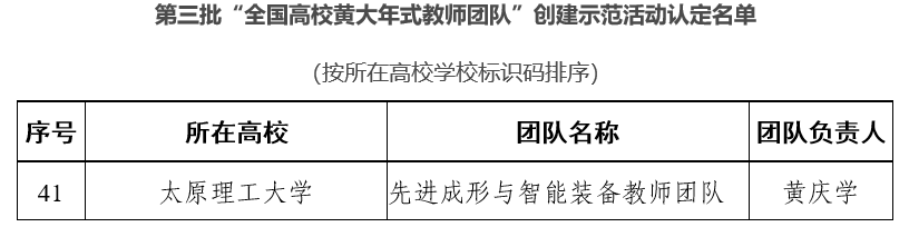 近日,教育部公布了第三批“全国高校黄大年式教师团队”认定名单,太原理工大学机械工程学院先进成形与智能装备教师团队(以下简称团队)成功入选!