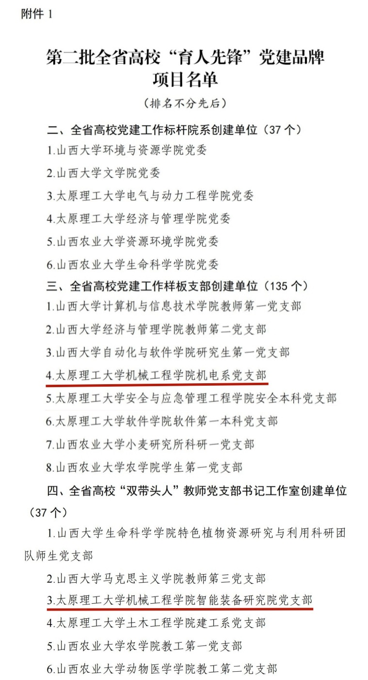此次我院入选项目涵盖2个类别,其中机电系党支部入选“全省高校党建工作样板支部”创建单位;智能装备研究院党支部跻身“全省高校‘双带头人’教师党支部书记工作室”创建单位。