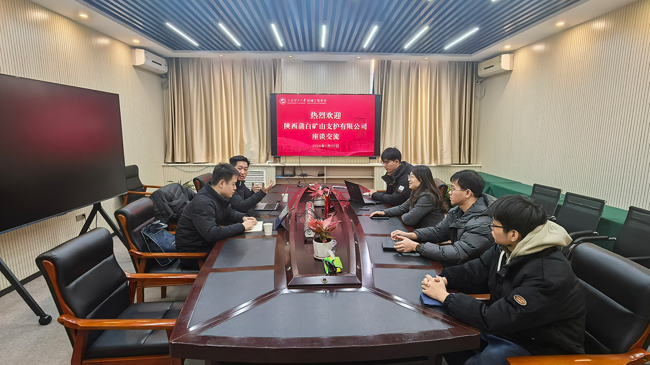 近日,陕西蒲白矿山支护有限公司研发负责人周翰源一行来院开展调研交流活动,双方围绕校企合作机制建设、矿山装备技术研发及人才培养等内容进行深入交流。学院副院长丁华主持座谈会,相关教师与博士生代表参会。