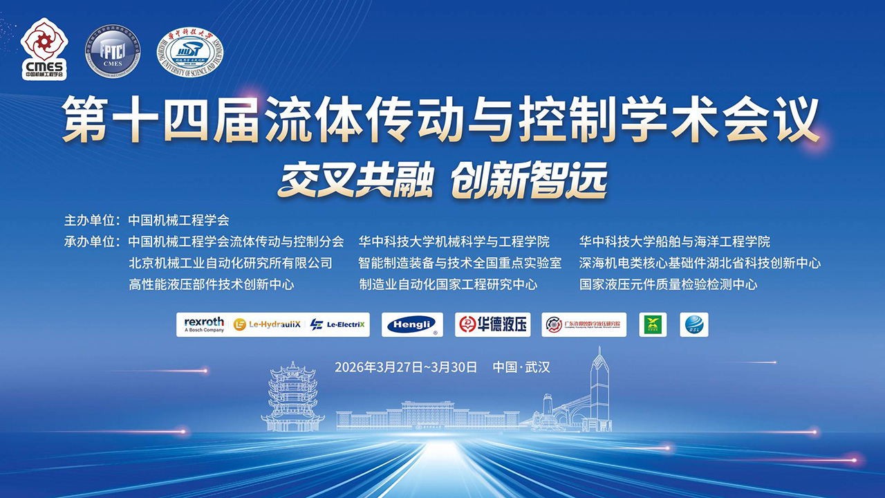 流体传动与控制学术会议由中国机械工程学会主办,是流体传动与控制领域极具影响力的顶尖学术盛会,每两年举办一届。自 2000 年创办以来,会议已连续成功举办十四届。本届会议(14th FPTC-2026)于 2026 年 3 月 27 日至 30 日在武汉召开,由华中科技大学承办,以 “交叉共融,创新智远” 为主题,汇聚了国内外众多专家学者,共同交流研讨领域前沿进展与未来发展方向。