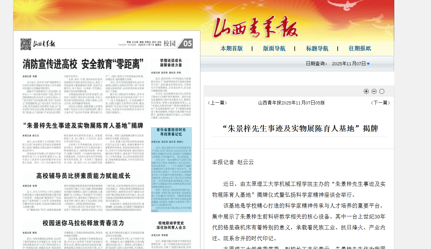山西青年报:“朱景梓先生事迹及实物展陈育人基地”揭牌
