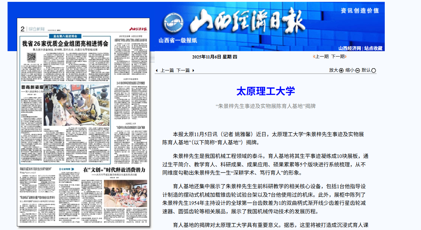 山西经济日报:太原理工大学 “朱景梓先生事迹及实物展陈育人基地”揭牌