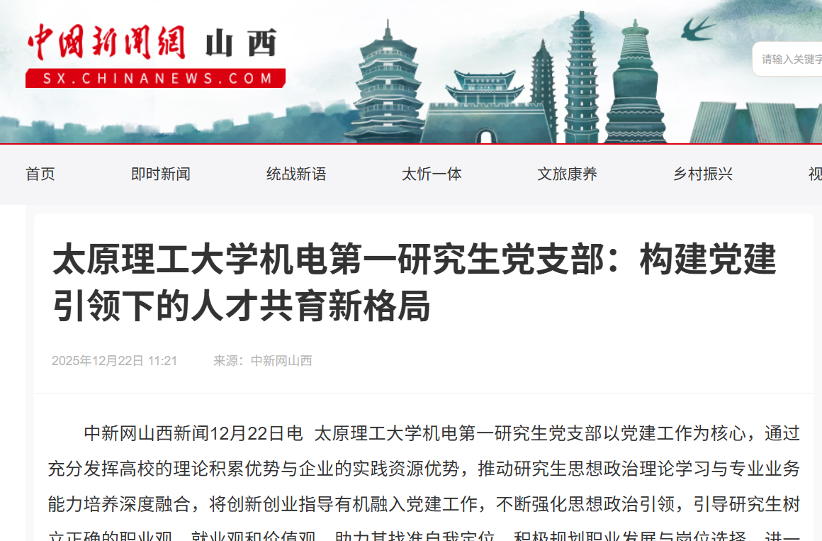 中新网:太原理工大学机电第一研究生党支部:构建党建引领下的人才共育新格局